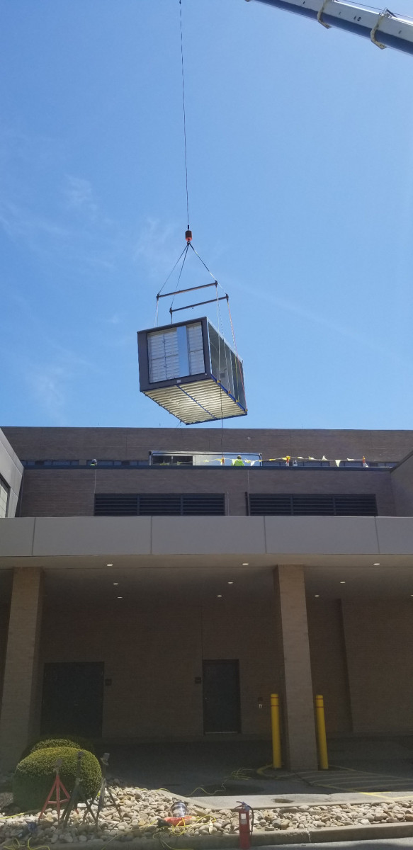 ⦁ Custom down length of AHU so install could be moved via freight elevators.