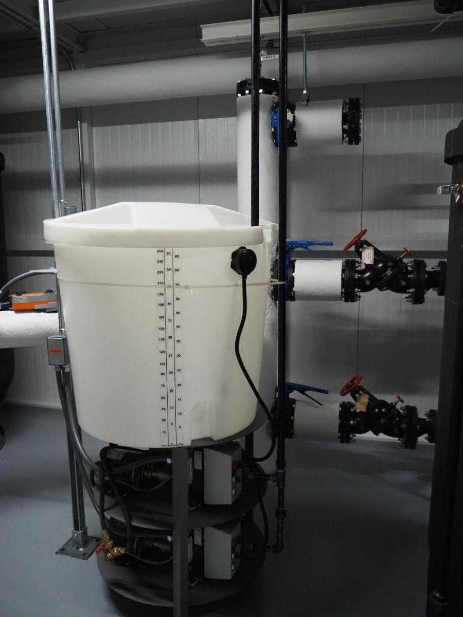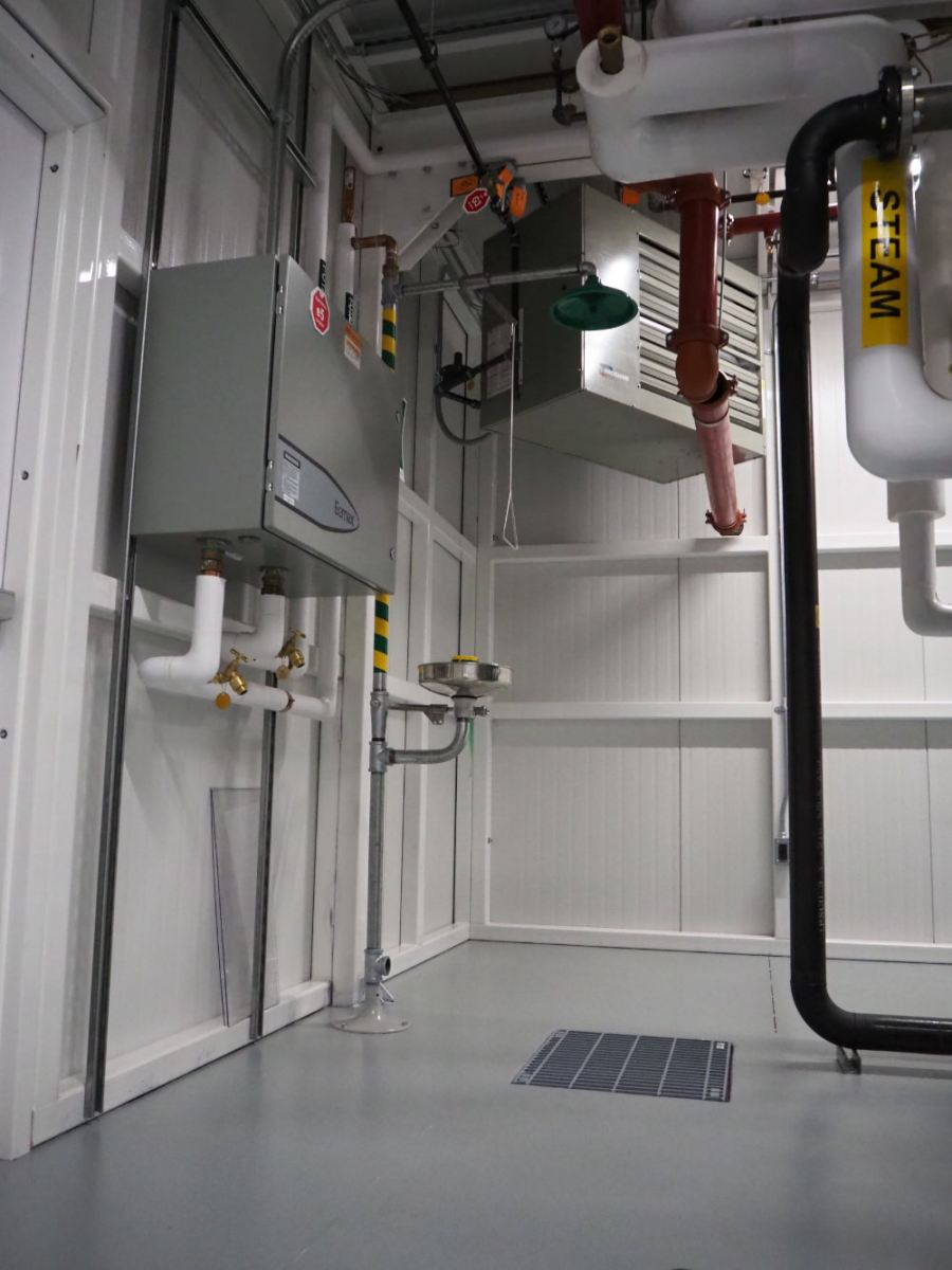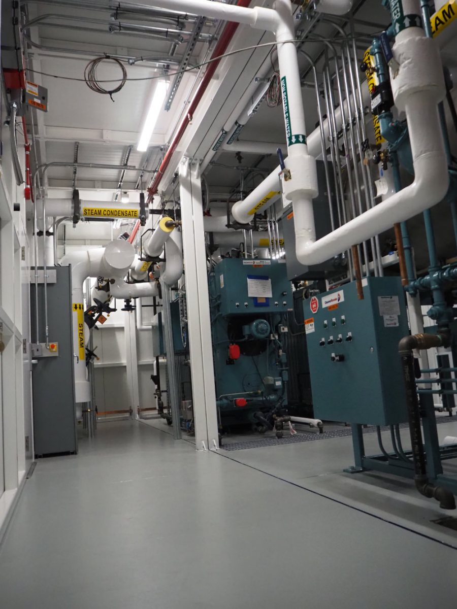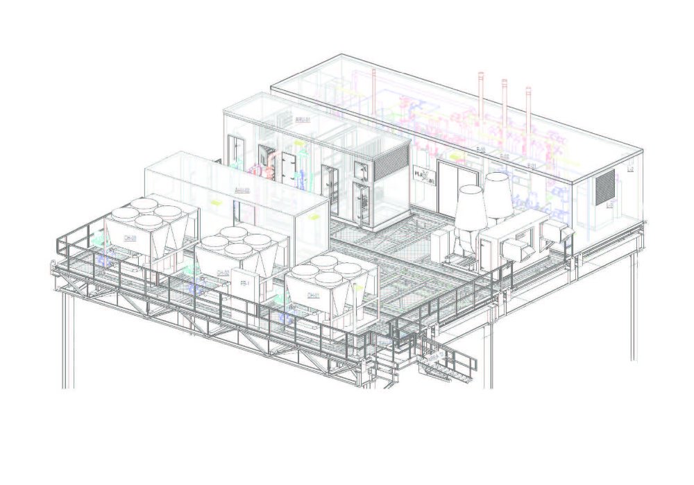 A 2700 sqft. custom mechanical platform and penthouse with an integrated chilled water system, hot water system, compressed air, steam, general and lab air handlers.